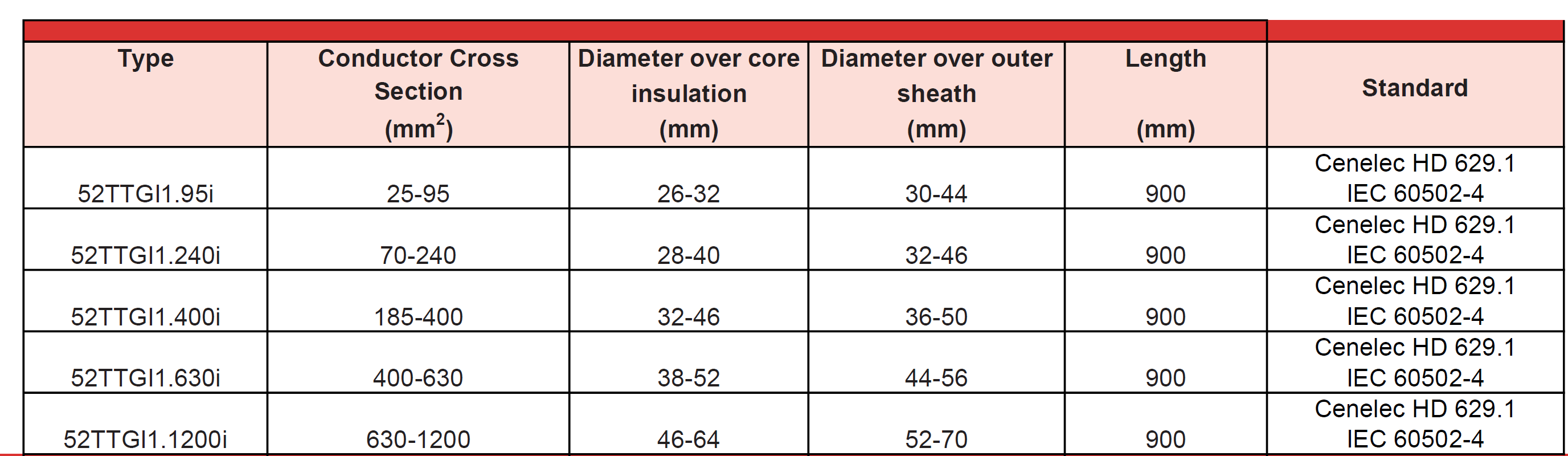 The “52TTGI1” terminations are designed for single core polymeric cables.