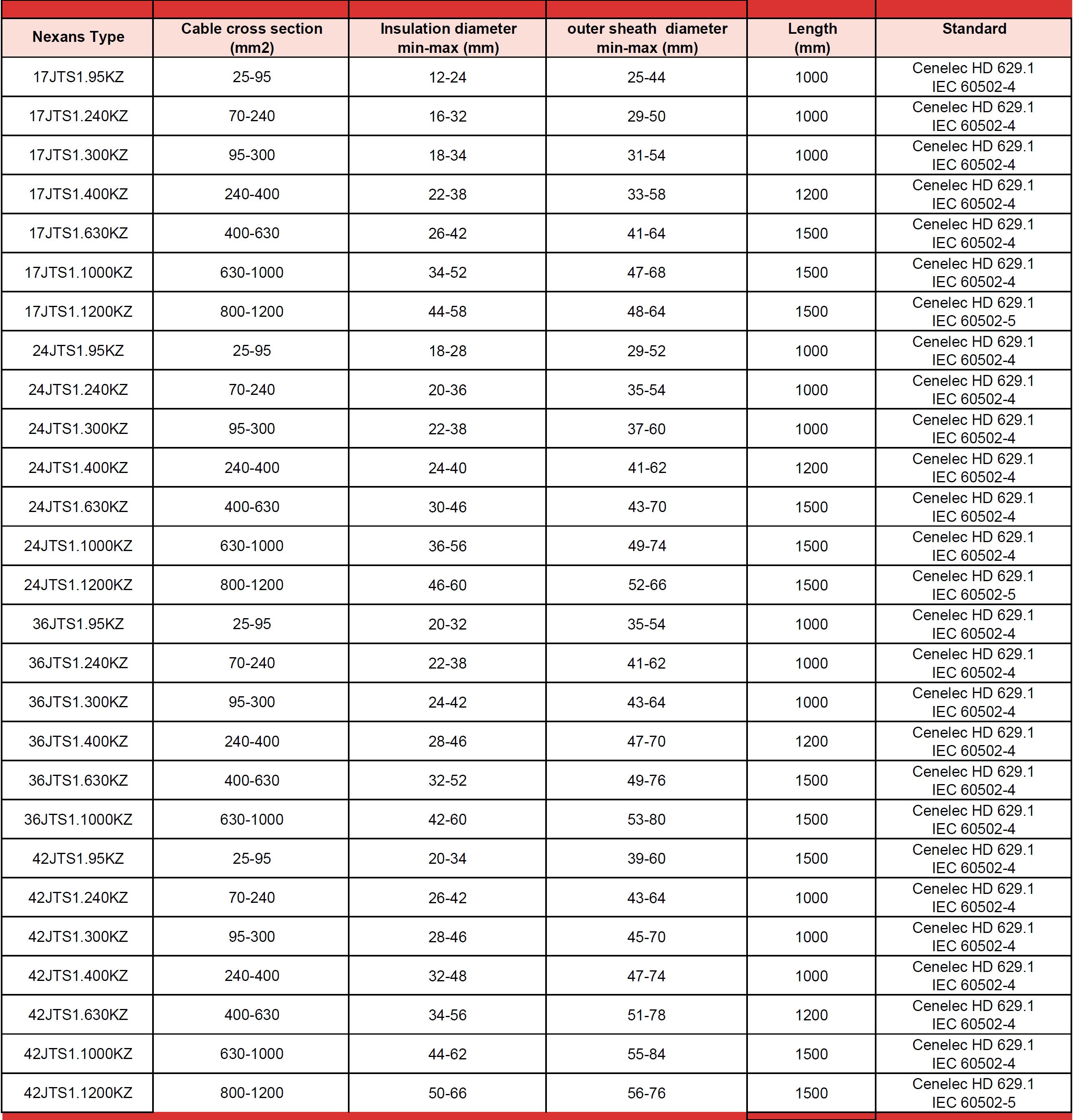 JTS1 KZ heat-shrink straight joints are designed for armored, plastic insulated cables with Cu wire or Cu/Al tape screen Armored AWA/ATA), to accommodate either crimped or mechanical connectors.