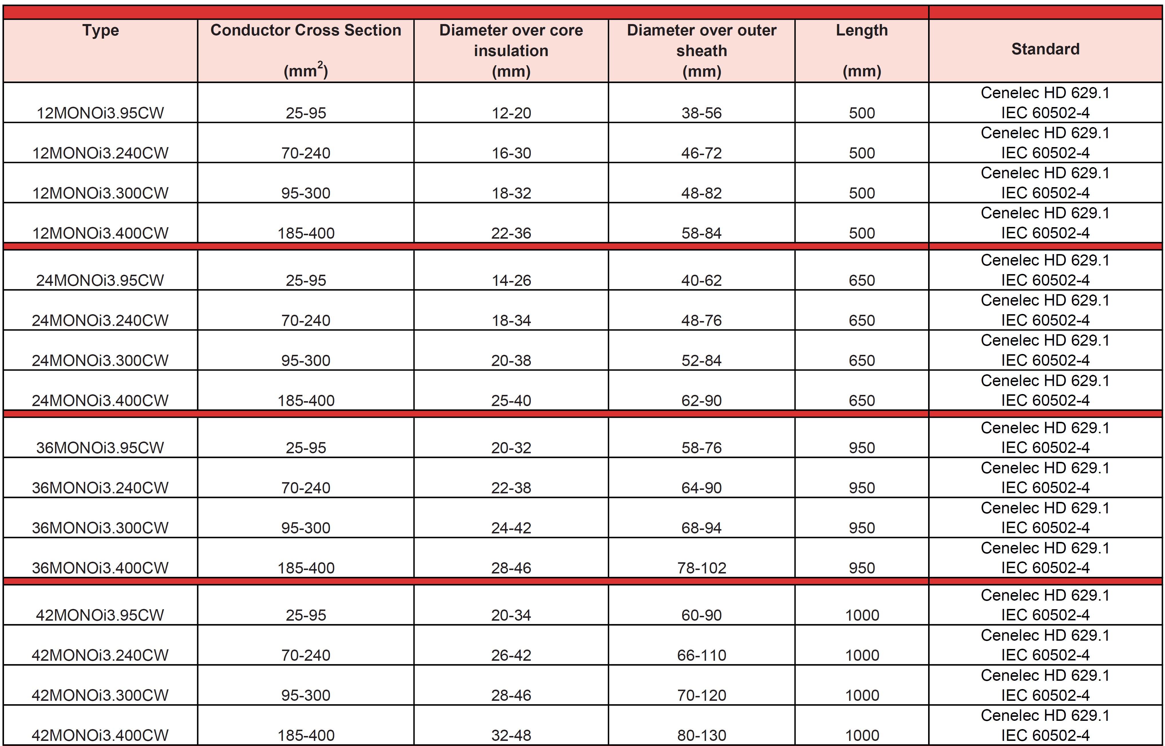The ‘’MONOi3 CW’’ indoor terminations are designed for max system voltages of 42 kV, for compact switchgears as well as for installations where space is limited. Easy, quick to install, reducing installation time and errors. The kit consists of a stress control mastic pad, a co extruded dual wall tube and red anti-tracking sealing mastic. Red anti-tracking break-out and red anti-tracking tubes “GT2” with adjustable length “D” are included in the kit. The design accommodates various conductor lugs. MC types are supplied with “GPH” mechanical conductor lugs. Right angle or straight heat-shrinkable boots are available on request.